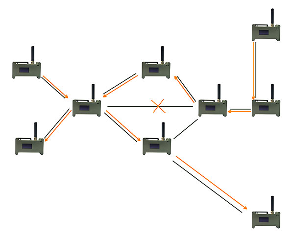 Каждое устройство в сети может служить ретранслятором для других устройств сети и создавать несколько альтернативных маршрутов к каждому устройству, получается очень надёжная сеть. Каждый в сети может получать сообщения даже от самого дальнего участника, с которым нет прямой радиосвязи.