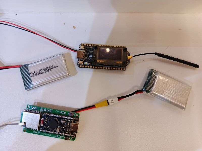 Но этим я не ограничился и устроил еще одну проверку. Давно известно, что платы на ESP32, к которым относится Heltec V4 потребляют заметно больше, чем платы на NRF52. И вот что я сделал: взял эти две платы, одновременно подключил к одинаковым аккумуляторам и стал смотреть, что получится.
