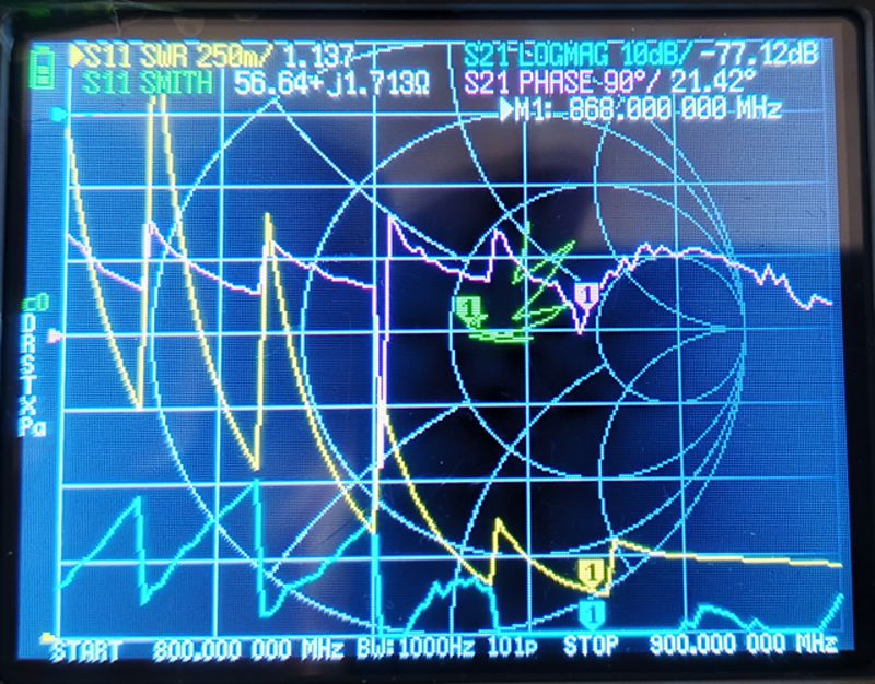 Итак, в результате первой проверки выяснилось, что Pro-micro работает лучше, чем V4. Мне это показалось странным, и я решил выяснить почему. Подозрение падало на то, что антенны все-таки не совсем одинаковые. Хотя они были не то, что одного типа, но даже из одной партии, я решил проверить их векторным анализатором.