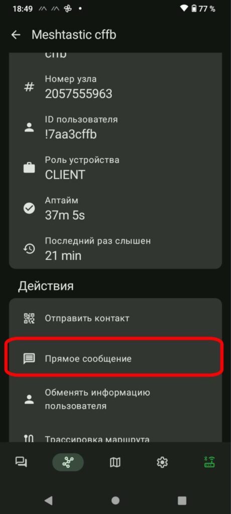 Теперь давайте разберемся, как определять, кто из пользователей канала находится в сети, как отправлять сообщение, оценивать качество связи, то есть выполнять простейшие действия в приложении Mehtastic. Работу с картой здесь рассматривать не будем, это тема для отдельной статьи.