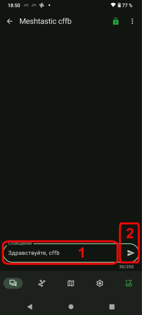 После того, как мы ввели его, нажимаем кнопку отправки (2) и производится попытка отправки нашего сообщения на это устройство.