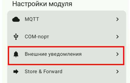 И последнее, что нужно сделать для активации зуммера — в настройке «Выход Буззера (GPIO)» установить Pin 6. После этого, как обычно, не забыть про кнопку «Сохранить». Теперь при получении сообщения устройство будет издавать короткий звуковой сигнал. Если по какой-то причине он нежелателен, то можно всегда деактивировать его в настройках, например, отключив «Внешние уведомления включены».