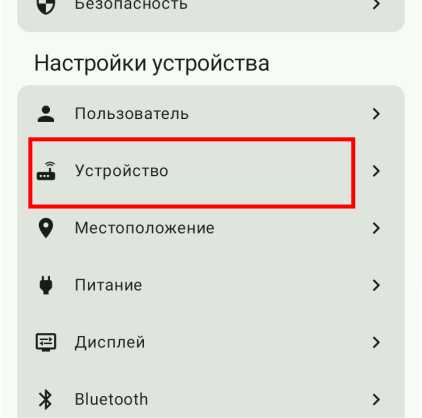 В приложении Meshtastic заходим в настройки и выбираем «Устройство».
