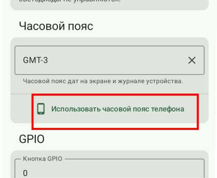 Пролистываем вниз, находим «Часовой пояс» и нажимаем «Использовать часовой пояс телефона». После этого снова пролистываем вниз и нажимаем «Сохранить». Чтобы правильное время начало отображаться, нужно перезагрузить ноду, например, нажатием маленькой кнопки сброса на передней панели.
