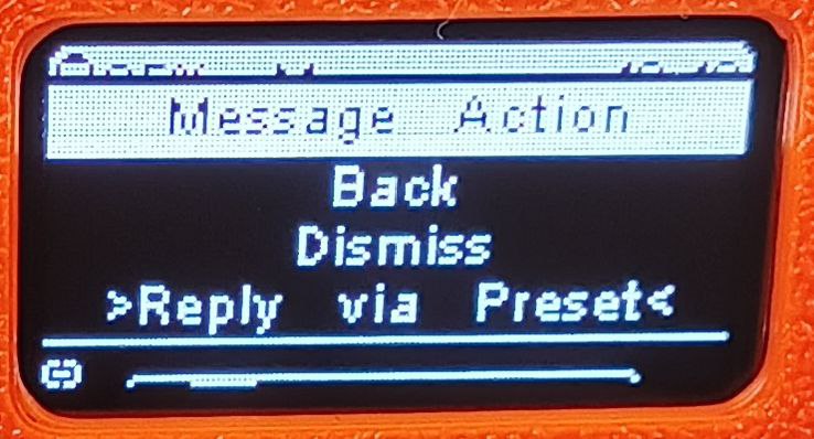 Когда курсор установлен на «Reply via Preset», сделаем длинное нажатие.