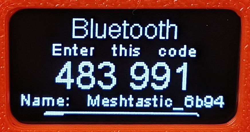 Прежде всего нужно отметить, что дисплей в Meshtastic используется в самом начале работы для сопряжения со смартфоном. Для этого на нем отображается 6-значный код, который нужно ввести на смартфоне, чтобы связать его с вашей нодой. Вводить этот код нужно без пробелов. В данном случае это 483991.